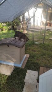 Abbiamo donato alcune cucce ad una famiglia che sognava di poter terminare di realizzare un’area recintata e sicura per i loro mici, ma che si è trovata in difficoltà.